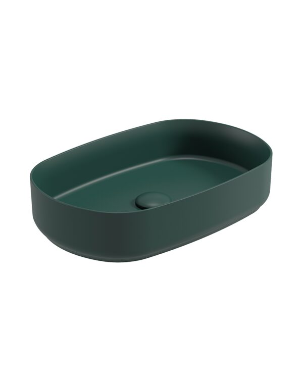 AVANTI Oval 55cm Countertop Wash Basin & Satin White Ceramic Click Clack Waste Forest Green