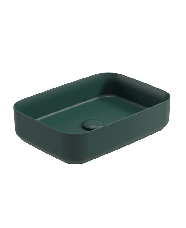 AVANTI Square 50cm Countertop Wash Basin & Satin White Ceramic Click Clack Waste Forest Green