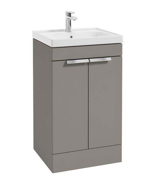 STOCKHOLM Floorstanding 50cm Two Door Vanity Unit Matt Arctic Grey - Brushed Chrome Handle