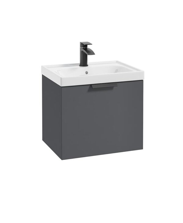 Drawer is metal box soft closing, Charcoal Interiors, Matching Wall Columns, Units are constructed Using 18mm MDF, Space Saving Short Projection,1 Drawer ,W500 x D 380 mm ,Matt Black Handle ,Tap and Waste Not Included ,Furniture Base Units Pre Assembled ,Always ensure bathroom has sufficient ventilation , To care for your product please ensure your bathroom is well ventilated from condensation. Our bathroom furniture is water resistant but excess water should be avoided. Regular cleaning with a soft damp cloth is recommended.