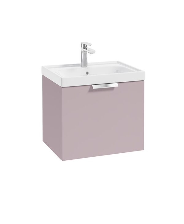 STOCKHOLM Wall Hung 50cm Single Drawer Vanity Unit Matt Cashmere Pink - Brushed Chrome Handle