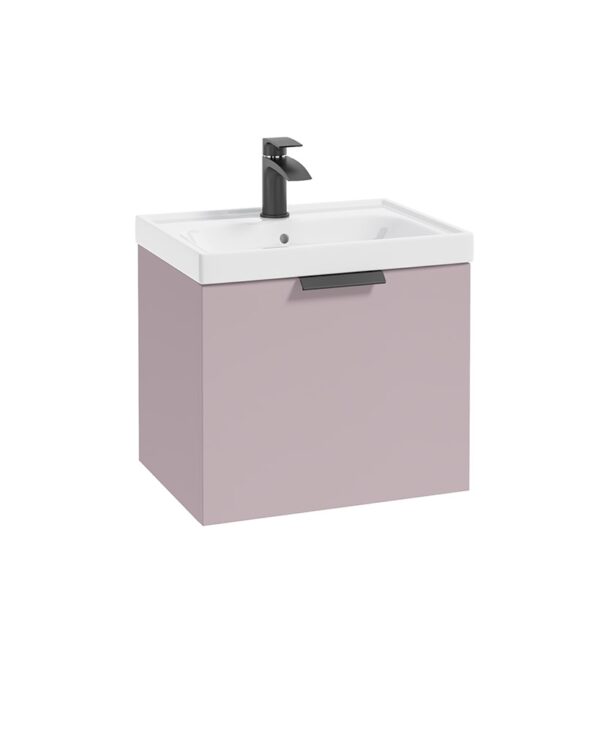 STOCKHOLM Wall Hung 50cm Single Drawer Vanity Unit Matt Cashmere Pink - Matt Black Handle